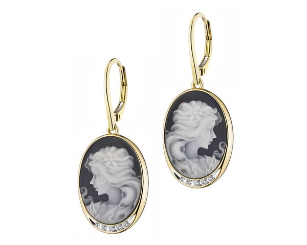 Kolczyki z żółtego złota z diamentami i agatami – kamea – próba 585 – 220.887. Żółte złoto rodowane