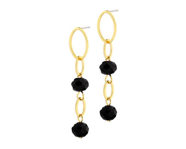 Kolczyki z mosiądzu pozłacane ze szklanymi detalami – AR534-8607. Mosiądz pozłacany, srebro pozłacane