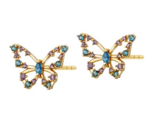 Kolczyki z mosiądzu pozłacane z cyrkonią – motyle