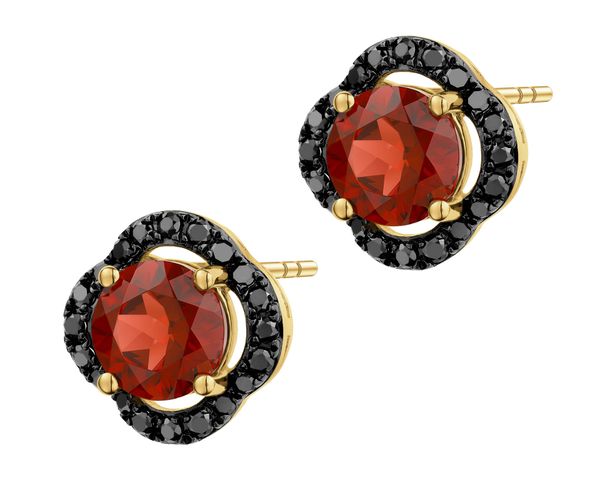 Kolczyki z żółtego złota z czarnymi diamentami i granatami – próba 585