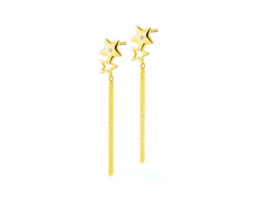 Kolczyki z żółtego złota z brylantami – gwiazdy – 0,01 ct – próba 375