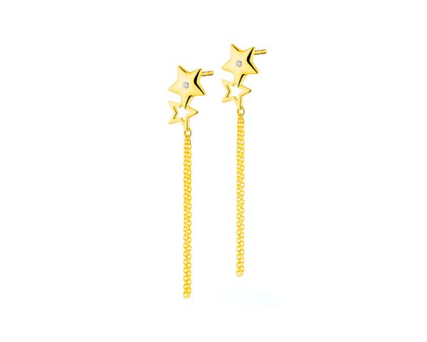Kolczyki z żółtego złota z brylantami – gwiazdy – 0,01 ct – próba 375 – 208.215. Żółte złoto