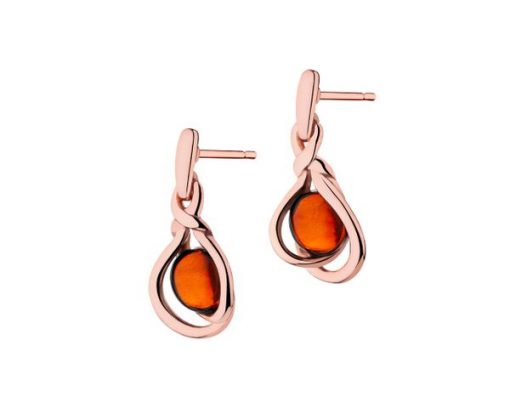 Kolczyki srebrne z bursztynem – AP534-0253. Srebro pozłacane, różowe