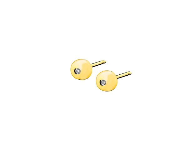 Kolczyki z żółtego złota z diamentami – kulki – 0,006 ct – próba 375