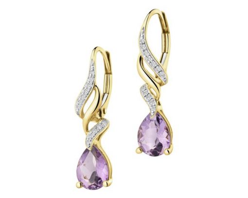 Kolczyki z żółtego złota z diamentami i ametystami – próba 585 – 220.582. Żółte złoto rodowane