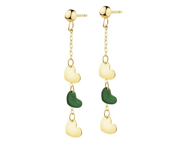 Złote kolczyki z malachitami syntetycznymi – serca – AP542-0699. Żółte złoto