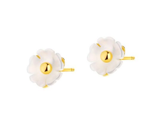 Złote kolczyki z białymi onyksami – kwiaty – AP534-8229. Żółte złoto