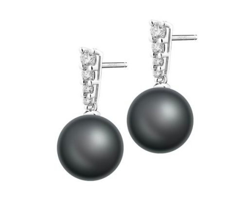 Kolczyki z białego złota z brylantami i perłami Tahiti – próba 750 – 220.314/T. Białe złoto rodowane