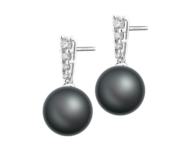 Kolczyki z białego złota z brylantami i perłami Tahiti – próba 750
