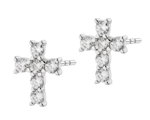 Kolczyki srebrne z cyrkoniami – krzyże – AP540-5922. Srebro rodowane