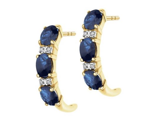 Kolczyki z żółtego złota z diamentami i szafirami – próba 585 – 203.237. Żółte złoto rodowane