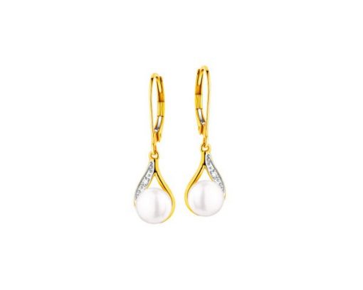 Kolczyki z żółtego złota z diamentami i perłami – próba 375 – 109.309. Żółte złoto rodowane