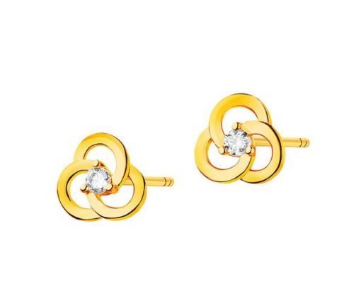 Złote kolczyki z cyrkoniami – kwiaty – K-879.01. Żółte złoto
