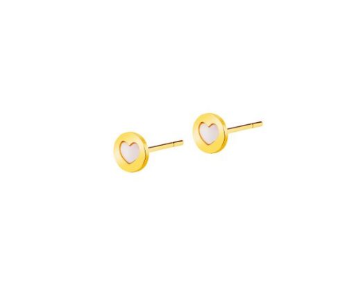 Złote kolczyki z masą perłową – serca – AP529-2071. Żółte złoto