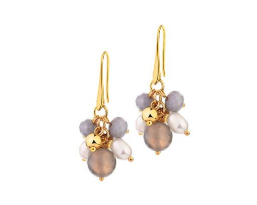 Kolczyki z mosiądzu pozłacane z agatami, perłami i szklanymi detalami – AR527-8650. Mosiądz pozłacany