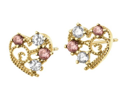 Złote kolczyki z cyrkoniami – serca – AP541-1450. Żółte złoto