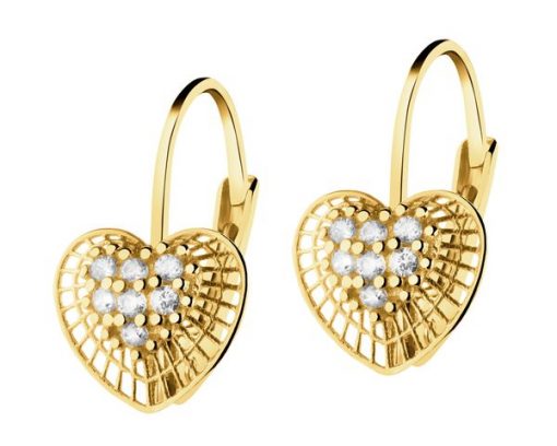 Złote kolczyki z cyrkoniami – serca