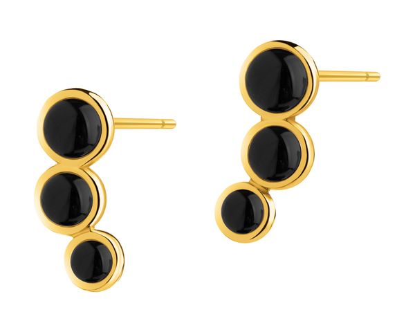 Kolczyki z mosiądzu pozłacane z agatami – AR542-9402. Mosiądz pozłacany, srebro pozłacane