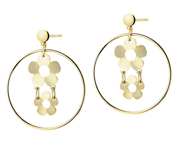 Złote kolczyki – koła, kwiaty – AP542-9693. Żółte złoto
