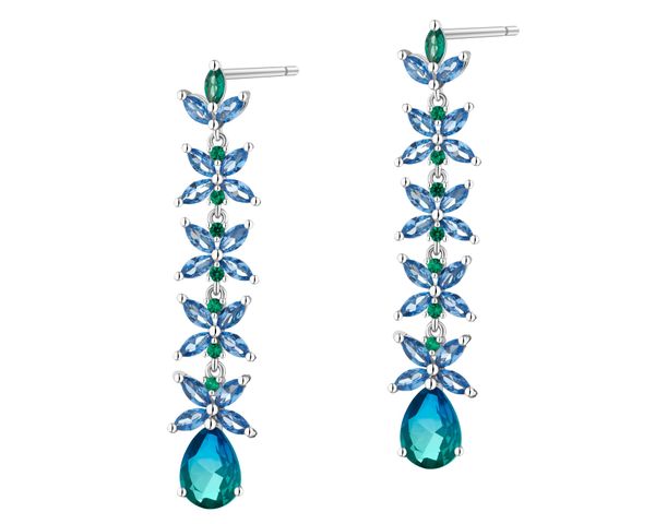 Kolczyki srebrne z cyrkoniami i szlifowanym szkłem – AP542-3228. Srebro rodowane