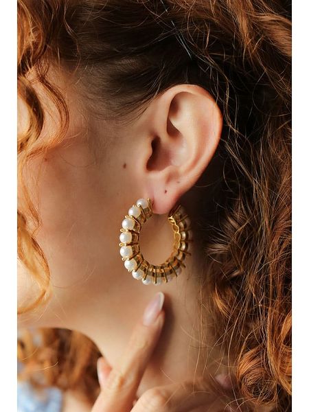 L’Atelier de Gaia Pozłacane kolczyki-kreole z perłami rozmiar: onesize