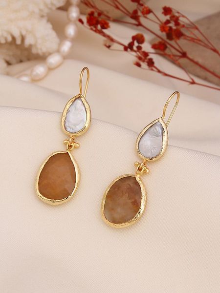 L’Atelier de Gaia Pozłacane kolczyki z agatem i perłami rozmiar: onesize