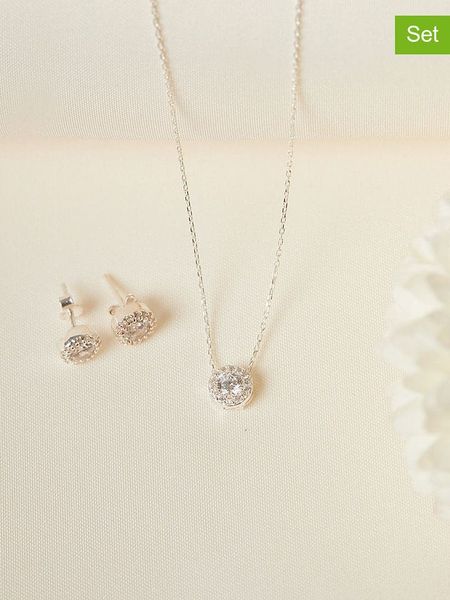 W zestawie:- 1 naszyjnik- 1 para kolczyków-wkrętekNaszyjnik:- materiał: srebro Sterling próby 925- typ łańcuszka: ankier- element ozdobny: koło- rodzaj kamienia: kamień ozdobny- kolor kamienia: bezbarwnyKolczyki-wkrętki:- materiał: srebro Sterling próby 925- zapięcie: motylkowe- rodzaj kamienia: kamień ozdobny- kolor kamienia: bezbarwnyWskazówka: Zdjęcie produktu w powiększeniu.