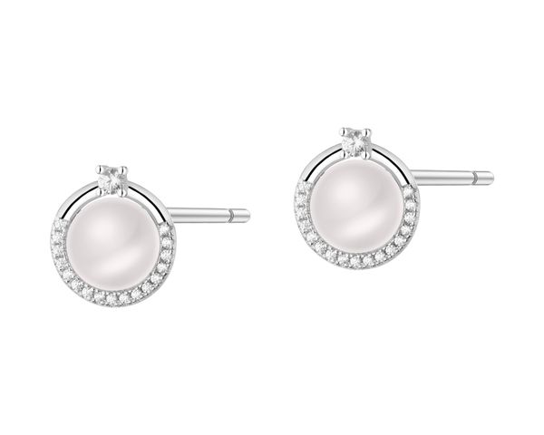 Kolczyki srebrne z perłami i cyrkoniami – AP542-9298. Srebro rodowane