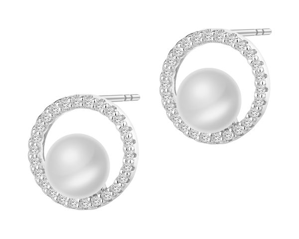 Kolczyki srebrne z perłami i cyrkoniami – koła – AP542-0850. Srebro rodowane