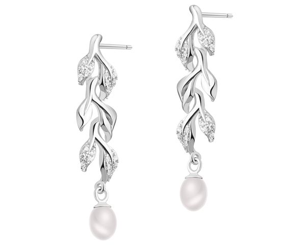 Kolczyki srebrne z perłami i cyrkoniami – liście