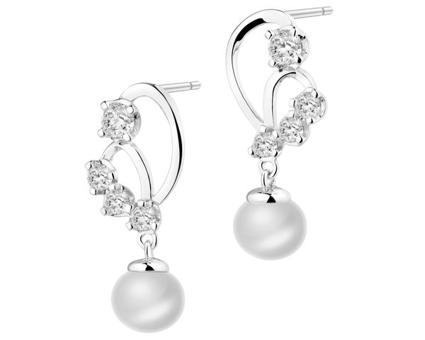 Kolczyki srebrne z perłami i cyrkoniami – AP542-0916. Srebro rodowane