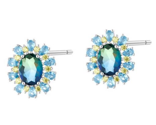 Kolczyki srebrne z cyrkoniami i szlifowanym szkłem – AP542-2845. Srebro rodowane