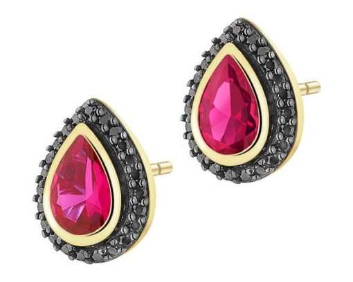 Kolczyki z żółtego złota z czarnymi brylantami i rubinami syntetycznymi – próba 585