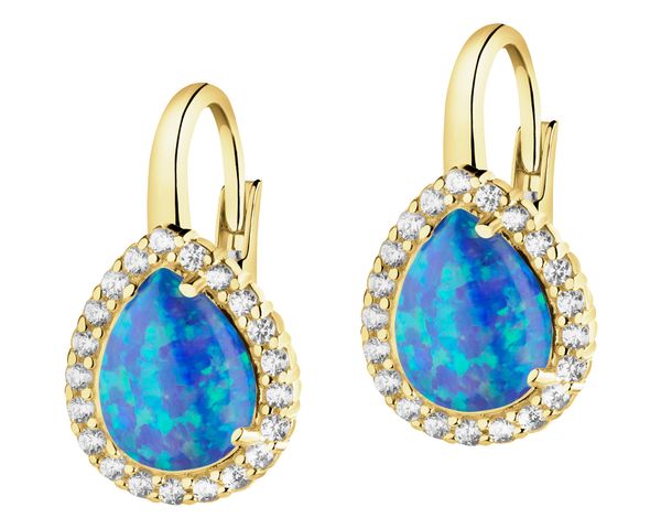 Złote kolczyki z opalitami i cyrkoniami – AP543-2864. Żółte złoto