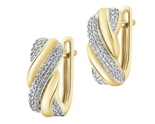 Kolczyki z żółtego złota z brylantami – 0,38 ct – próba 585 – 103.870. Żółte złoto rodowane