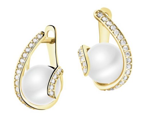 Złote kolczyki z perłami i cyrkoniami