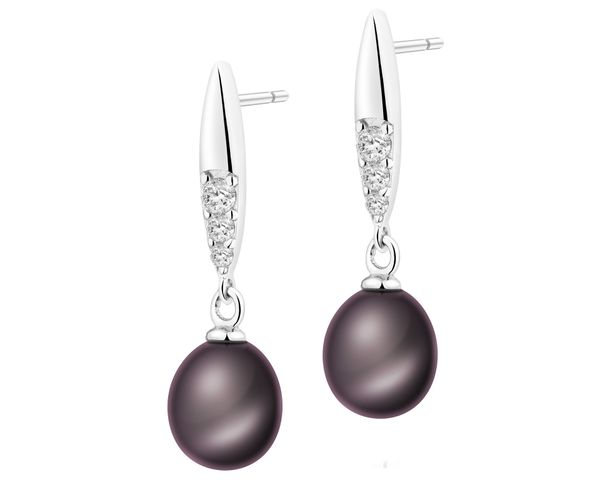 Kolczyki srebrne z perłami i cyrkoniami – AP542-1811. Srebro rodowane