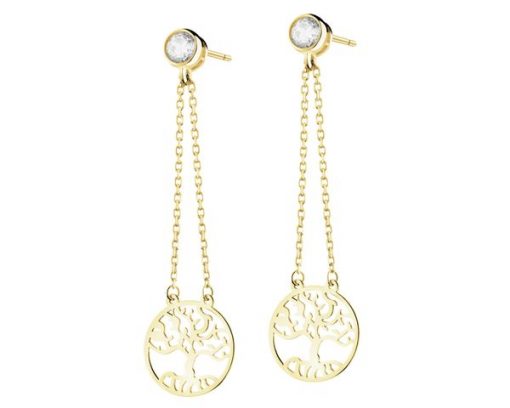 Złote kolczyki z cyrkoniami – drzewka – AP543-7199. Żółte złoto