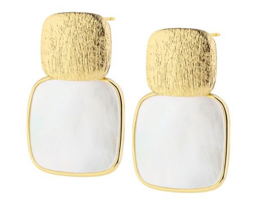 Kolczyki z mosiądzu pozłacane z masą perłową – kwadraty