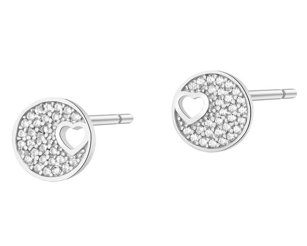 Kolczyki srebrne z cyrkoniami – koła, serca – AP541-7430. Srebro rodowane