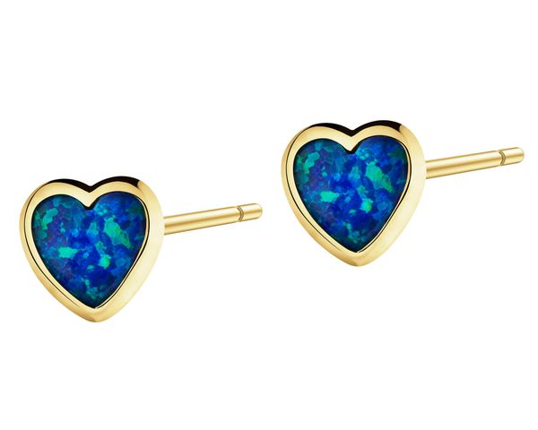 Złote kolczyki z opalitami – serca – AP543-9427. Żółte złoto