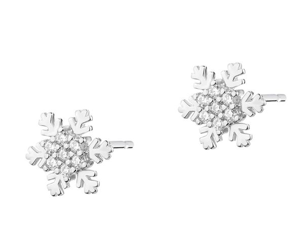 Kolczyki srebrne z cyrkoniami – śnieżynki – AP535-8357. Srebro rodowane