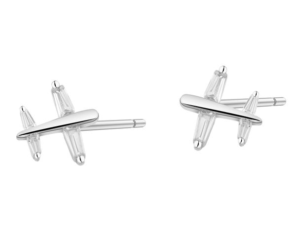 Kolczyki srebrne z cyrkoniami – samoloty – AP541-8719. Srebro rodowane
