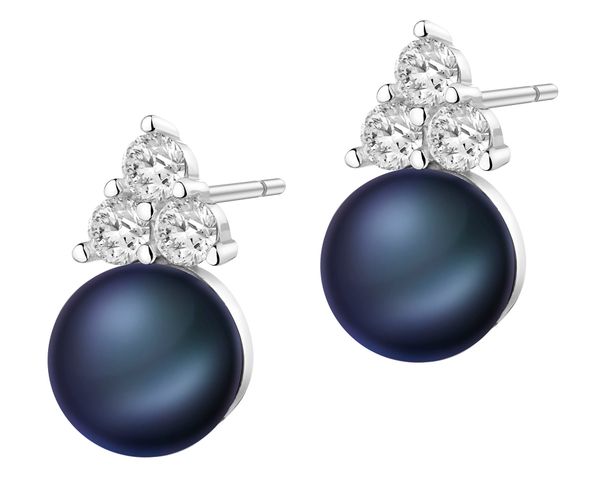 Kolczyki srebrne z perłami i cyrkoniami – AP542-1806. Srebro rodowane