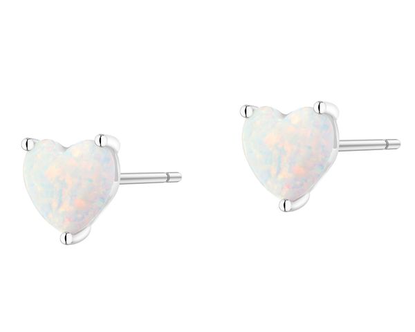 Kolczyki srebrne z opalami syntetycznymi – serca