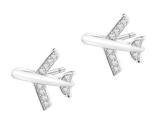 Kolczyki srebrne z cyrkoniami – samoloty – AP542-2258. Srebro rodowane