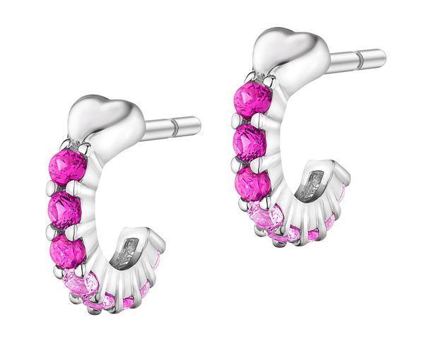 Kolczyki srebrne z cyrkoniami – serca – AP543-0048. Srebro rodowane
