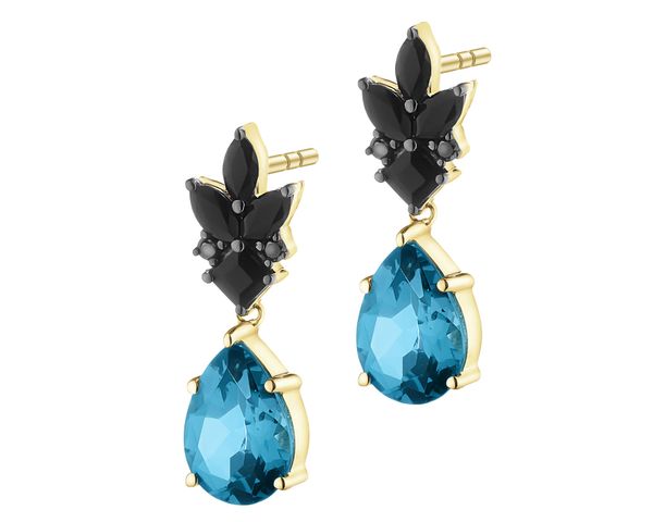 Kolczyki z żółtego złota z czarnymi brylantami i kamieniami ozdobnymi – próba 585
