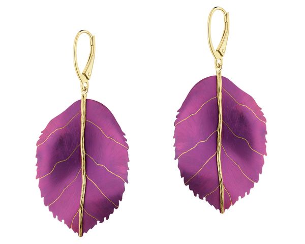Kolczyki ze srebra i tytanu – liście – AP544-2556. Srebro pozłacane, tytan