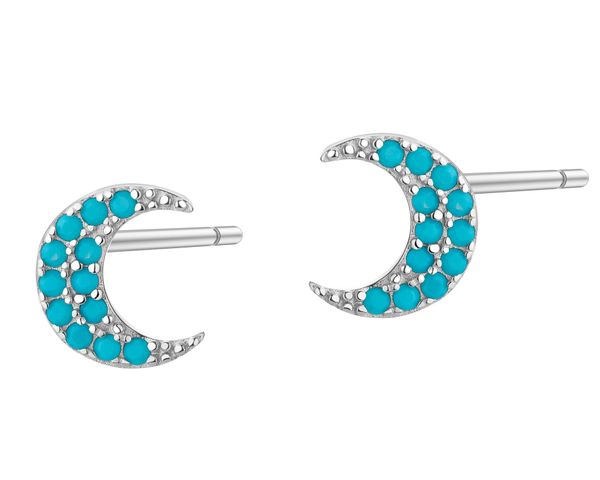 Kolczyki srebrne z turkusami syntetycznymi – Księżyce – AP542-2528. Srebro rodowane